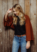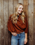Available in 4 colours: black, ivory, denim blue (show on mannequin) and rust (shown on model).
